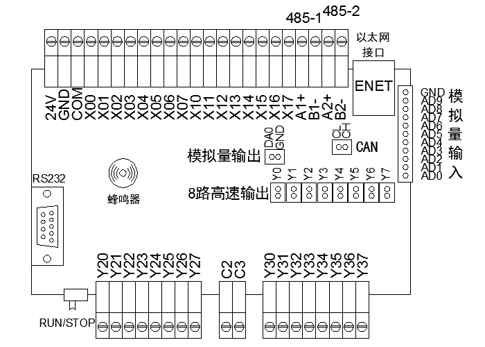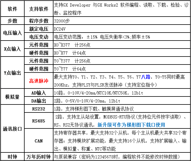 功能:高速輸入輸出/模擬量輸入輸出/485通信/CAN擴(kuò)展/以太網(wǎng)通信