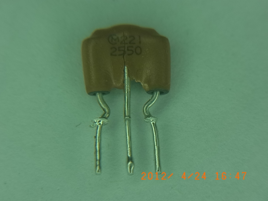 這是一臺進口設備,員工誤將220V電壓接入DC24V輸出線,各位說是壓敏電阻,有一定道理.DC24V輸出是一直流電磁閥.問題是,兩只腳的壓敏電阻比較常見,三只腳的還沒見過.它又是怎么工作的?