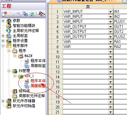 我是用的是三菱中國官網上下載的1.77F版的編程軟件,在定義標簽,編寫標簽程序都是OK的,但是當我編譯的時候,FB塊名卻是紅色的。不知是怎么回事?請教各位大俠給指點一二!