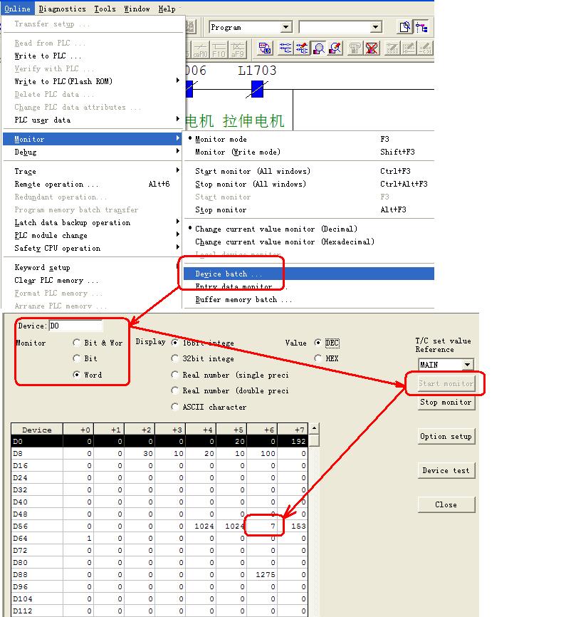 文本與PLC連接后,修改數據,找PLC內存中對應的地址 程序小的話幾乎可以一眼看出。 |