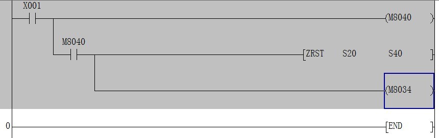 m8034的線圈電時,禁止所有的輸出,但是程序仍然正常執(zhí)行