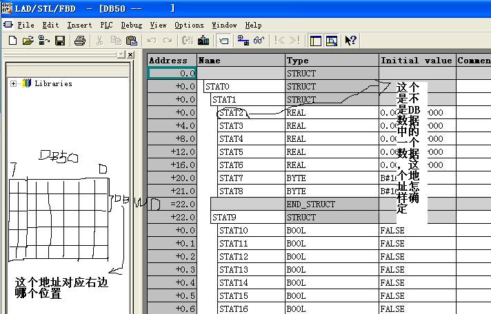 你用黑線圈出的地址是DB50.DBD0(因為你定義的數據類型是實數)