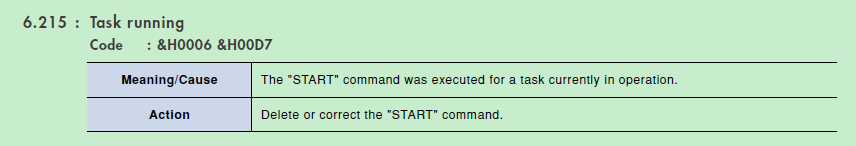 目前已有一臺搭載yamaha 四軸機械手的工裝交付客戶處,經客戶反應,機械手偶爾會停止運行,驅動器上顯示代碼6.215.代碼解釋附在后面,哪位遇到過類似的情況?實在找不出原因所在。驅動器是RCX340系列