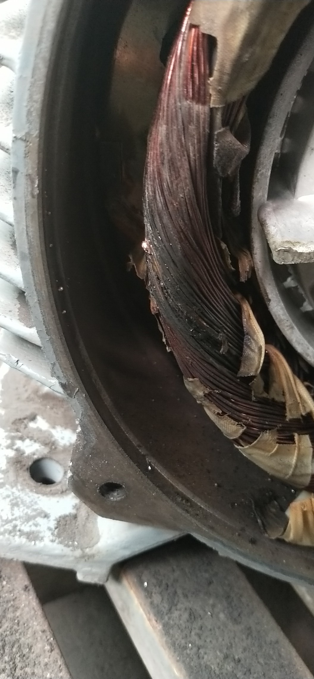 這種不是缺相,缺相是兩相線圈燒成黑色的,這中應該是一相瞬間擊穿搭鐵,因為與短路點與進線側很近,所以瞬間短路過熱燒壞漆包線!