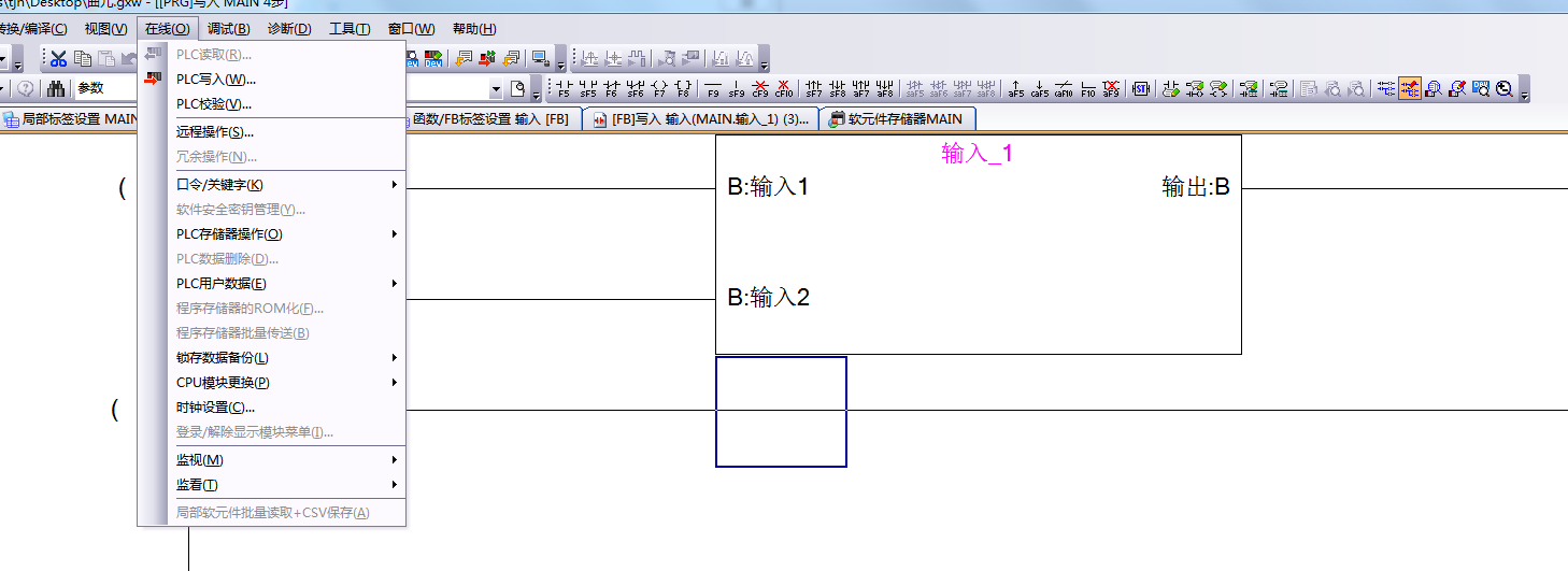 如圖簡單寫入一個FB塊,然后寫主程序,寫入到PLC后,無法讀取出來