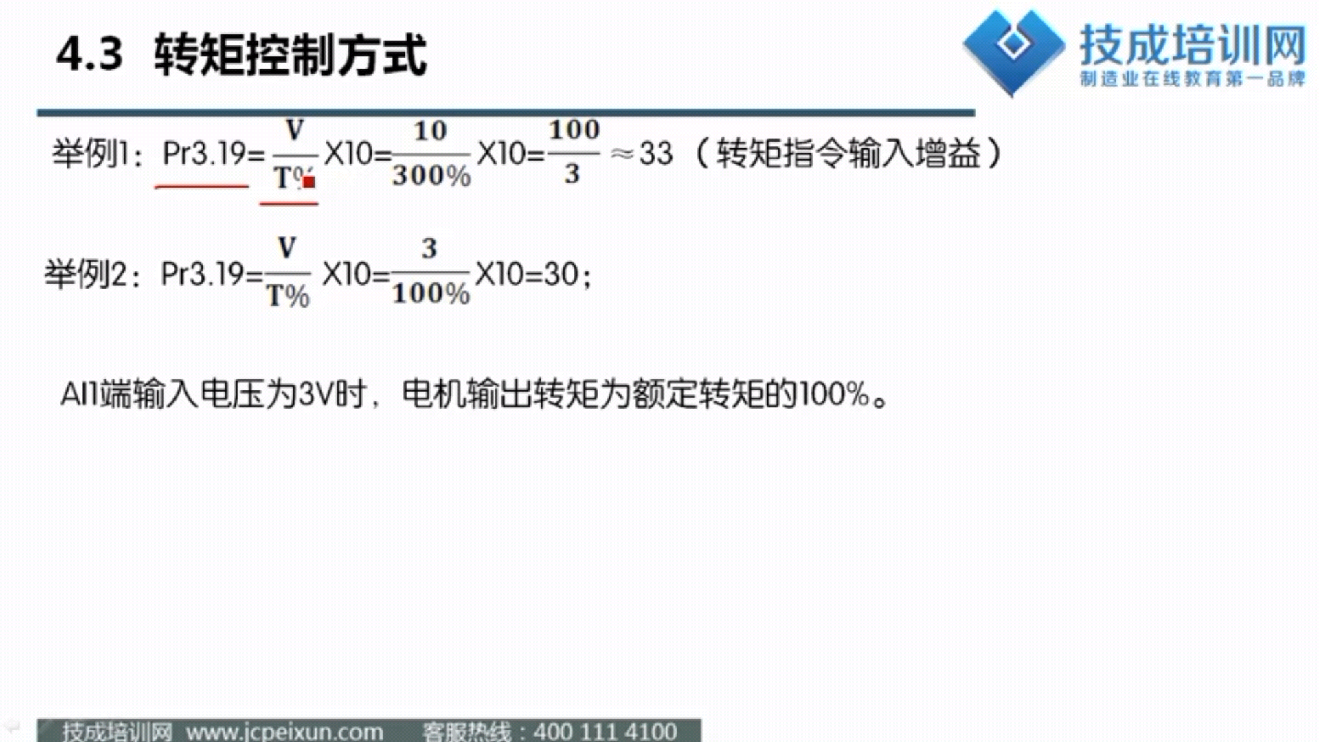 我想問一下,案例一?? 是不是可以理解為P3.19設置為33,伺服電機對應的關系是不是為10V??--300%扭矩值,伺服電機額定扭矩為1.27n.m 那10V對應的是不是3.81n.m