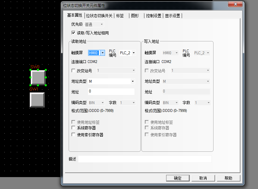 如圖,第一個是威綸在線模擬OK(可以控制PLC),其他圖都是步科的,怎么改變參數就是沒辦法在線模擬控制PLC,按鈕會自動復位(按鈕是切換開關,保持型),也沒有提示PLC未連接