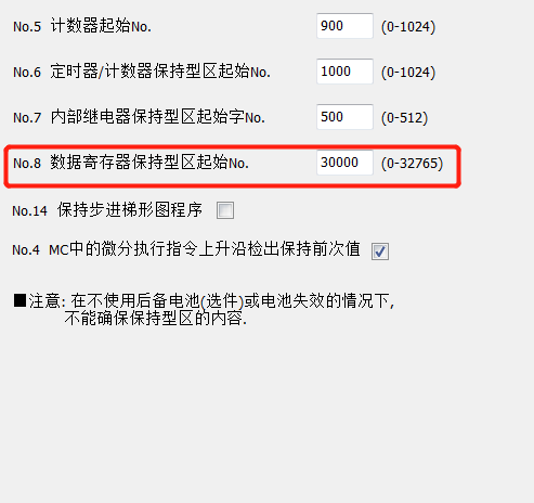 請問各位大師:我現使用松下PLC / FP-XH停電保持功能,在系統里面設定掉電保持寄存器后,當機器停電后還是不能保持數據,這是設定問題,還是PLC要加裝電池才行呢,第一次用松下PLC做項目,讓大家見笑了