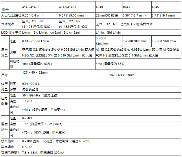 美國TSI 質量流量計 TSI4040 產品參數: