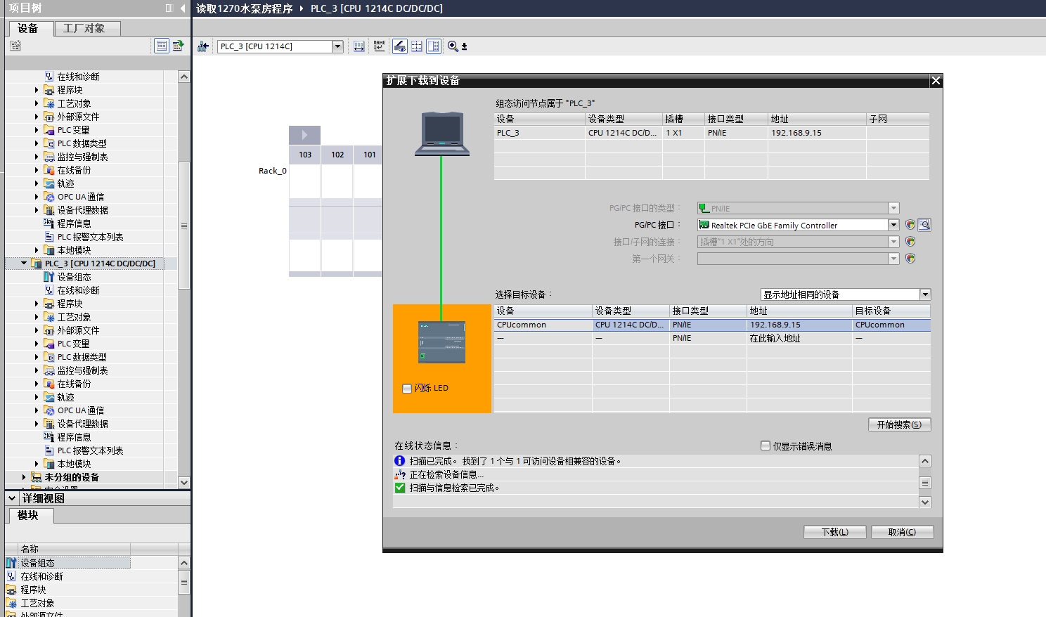 我電腦連接了一臺1214C,新建了一個項目把PLC的項目IP設置成了192.168.9.15。完成項目后我使用在線可訪問設備找不到plc。設用非特定設備也找不到PLC,使用電腦網口直連PLC也找不到。 但是我添加設備組態好就可以找到PLC ,請教各位大神這個是什么原因呢。