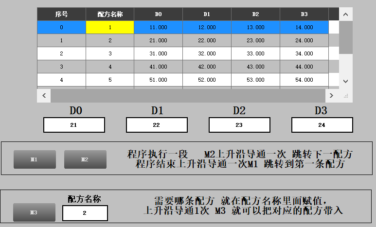 請教下,用昆侖通泰做配方,plc執行完第一條配方程序,接著執行第二條配方程序,第三條第四條.....,這個腳本程序如何做,有沒案例截圖分享 |