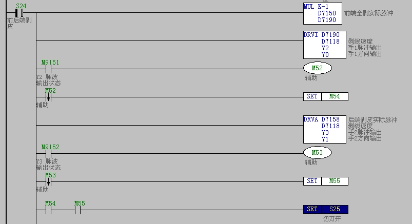 改用M9151和M9152,則程序可以順序運(yùn)行下來,但是脈沖數(shù)多的一軸輸出脈沖總是沒有得到設(shè)定值,假設(shè)我要求輸出90個(gè)脈沖,可是他卻只輸出了10個(gè)脈沖,,,苦惱。。。調(diào)試無法進(jìn)行。。