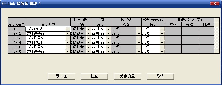 今天做實驗碰見一個傷腦筋的事, 我用 CC-LINK(型號:QJ65BT11) 鏈接6塊遠程模塊 (型號:AJ65SBTB1-32DT 、 AJ65SBT-64AD、 AJ65SBT-64AD、AJ65SBTB1-32DT、AJ65SBT-64AD、AJ65SBT-64AD)站號是:主站是0 、遠程模塊按上面的循序分別 1、2、3、4、5、6 CC-LINK 參數及站信息分別見圖1 、圖2 。