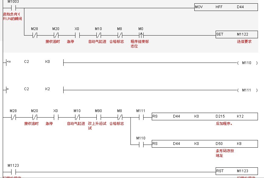 上面回復我修改了,你再看下 樓主留言:清楚原數據的問題我已經解決了。我上傳我的程序吧。而且有個問題是,你給我的程序里沒有用到M8112發送請求可以接受數據,但是我昨天現場調試的時候也試過不用M1122發送請求(臺達的發送請求為M1122),但是就接受不到條形碼了,加上后又可以接受到 |
