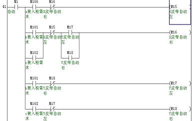 某一建筑陶瓷廠,要為壓機車間設計一自動化放粉程序。現場有3臺壓機,分別為a,b,c 。每臺壓機都有1個儲存約2噸粉料的料倉。粉料由原料車間(粉料制造處)通過1條斜向上的坡帶送到壓機上方平臺,為壓機補充粉料。在平臺上方的坡帶下有2條能正反轉的運輸帶x和y。粉料通過坡帶運倒平臺上方后直接落入運輸帶x, 運輸帶x 左轉時, 粉料落入a號壓機的料倉,為a號壓機補充粉料。當運輸帶x右轉時,粉料落入運輸帶y。當運輸帶y左轉時,粉料落入b號壓機。當運輸帶右轉時,粉料落入c號壓機。3臺壓機料都滿則坡帶停止運轉。要求有自動和手動2種控制方式,壓機不能缺料不能溢料。輸入點與輸出點自行設計。
