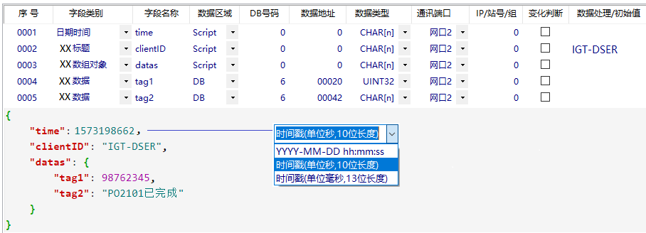圖上'字段類別'欄目中所對應(yīng)的'XX',在HTTP協(xié)議里對應(yīng)'上報'和'下載',在MQTT協(xié)議里對應(yīng)'發(fā)布'和'訂閱'。另外智能網(wǎng)關(guān)也支持邊緣計算腳本編程(手冊下載),通過腳本程序可以實現(xiàn)任意格式的JSON、XML,以及逗號分隔符等各種非標(biāo)準(zhǔn)格式的文件機(jī)構(gòu),以及數(shù)據(jù)的運算處理。