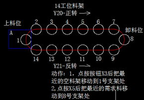 現有一個十四工位的料架  有一個上料位 一個下料位。