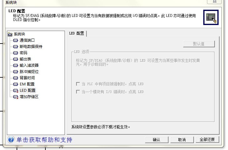 引用引用第1樓fjqz00于2013-08-12 09:46發表的 :在系統塊設置里面有一個LED的配置,可以勾選:當PLC中有項目被強制時,點亮LED