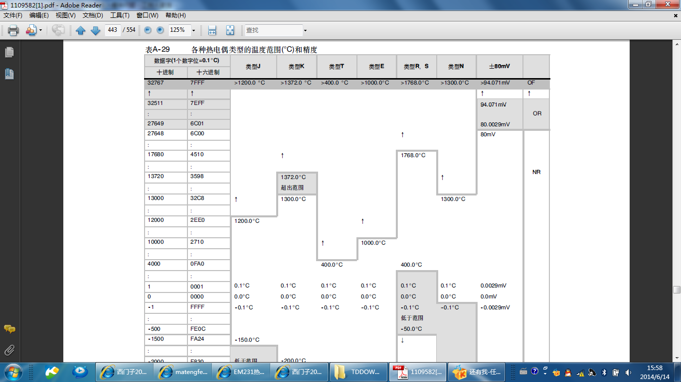 J型熱電偶的溫度測量范圍是多少,對應的輸出電壓值是多少,在200PLC內部轉化的數字量是0~32000嗎,讀出的數字量的值除以10就是當前溫度值嗎?