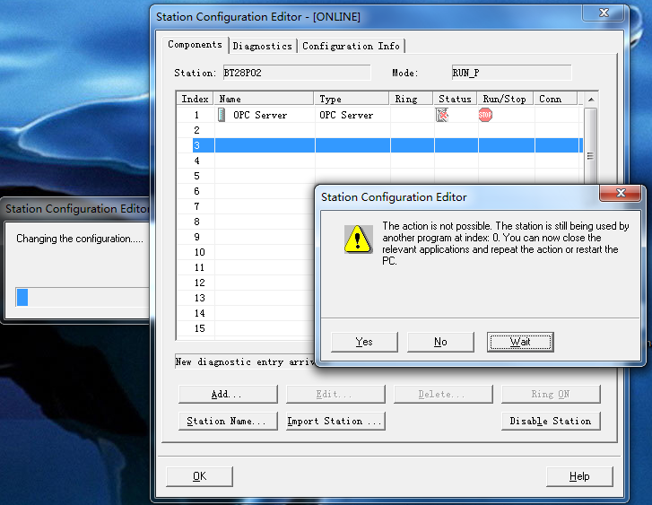 各位大神,我的計算機(jī)用SIMATIC_NET_PC_Software V8.2做OPC通信,在組態(tài)時,一旦添加組件就自動關(guān)機(jī)了,什么問題啊!!
