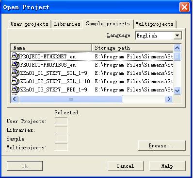 在SIMATIC Manager中選擇【Open Project】 時,選取【Sample Projects】,里面本身帶有樣例程序。