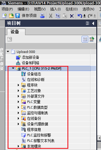 打開Portal V15,創建項目比如“Upload-300”。在項目樹中選擇項目名稱,在“在線”(Online) 菜單中,選擇“作為新站上傳設備(硬件和軟件)”(Upload device as new station (hardware and software))。