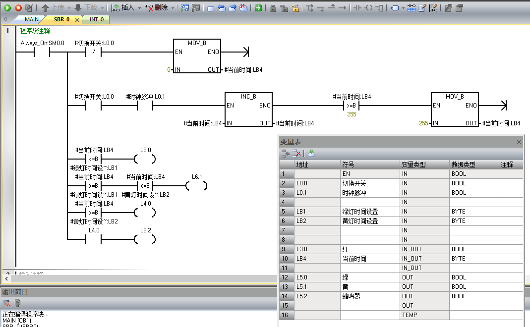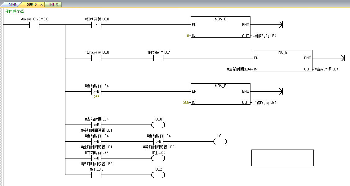 1 程序中并沒用到紅,且紅應該用OUT 。 2 當前時間用了LB4就不能輸出L4.0 。 3 輸出并沒用到綠、黃、蜂鳴器;輸出L6.0 / L6.1 / L6.2 錯誤。 |