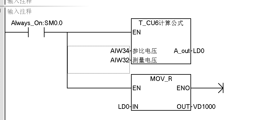 該程序中模擬量采用了雙通道同時輸入,通道0和通道1,我利用變頻器的+10端子通過電位器給雙通道輸入2.5V電壓,正常情況下程序中的VW560應該有數字2000左右的顯示,但實際始終是0,師傅們幫忙看看!謝謝!我查了些資料沒找到我想要的。
