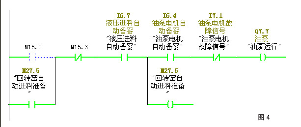 圖3中的Q7.7是按圖1中油泵啟動時輸出的 圖4中的Q7.7是按圖1中自動進料啟動時輸出的 兩種情況下都要能輸出Q7.7,該怎么寫指令 |