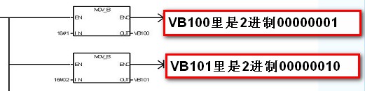 VW100=VB100,VB101(西門子的字元件低8位在前VB100.7,VB100.6,VB100.5........)