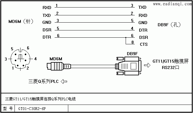 我搜索不到"TS與三菱Q系列的通訊線"能否提供更詳細的型號,或者接線圖