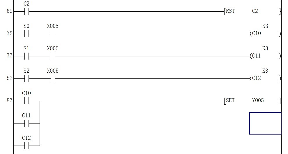 我想編一個挑不良品的程序!不良品觸發信號為M1   不良品踢出氣缸Y5!  兩者之間還隔了1個產品!不良品踢出Y5磁性開關為X13!我自己編了一下,只會編一個不良品的!連續兩個三個不良品就不知道到怎么編寫了!求各位老師們教教!我的郵箱:lifanghao521@qq.com  謝了 哦對了,M1觸發后記數磁性開關為X5