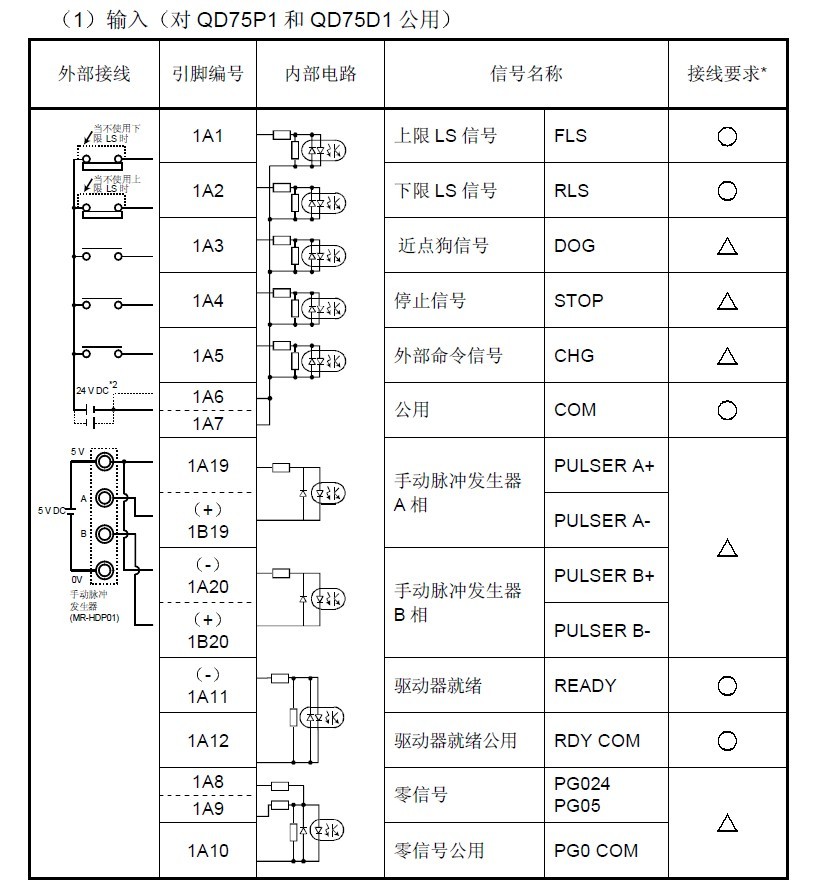 可以說下接線要求一欄中O 和  △分別代表什么要求嗎?