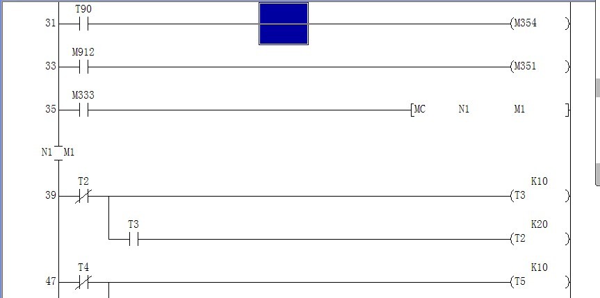 剛接觸三菱,碰到以圖的程序,M333在程序里其它地方沒有,估計是觸摸屏里的開關,我聯機進監控模式強制接通,可是不行,但M912就可以,請各位指點,謝謝了!