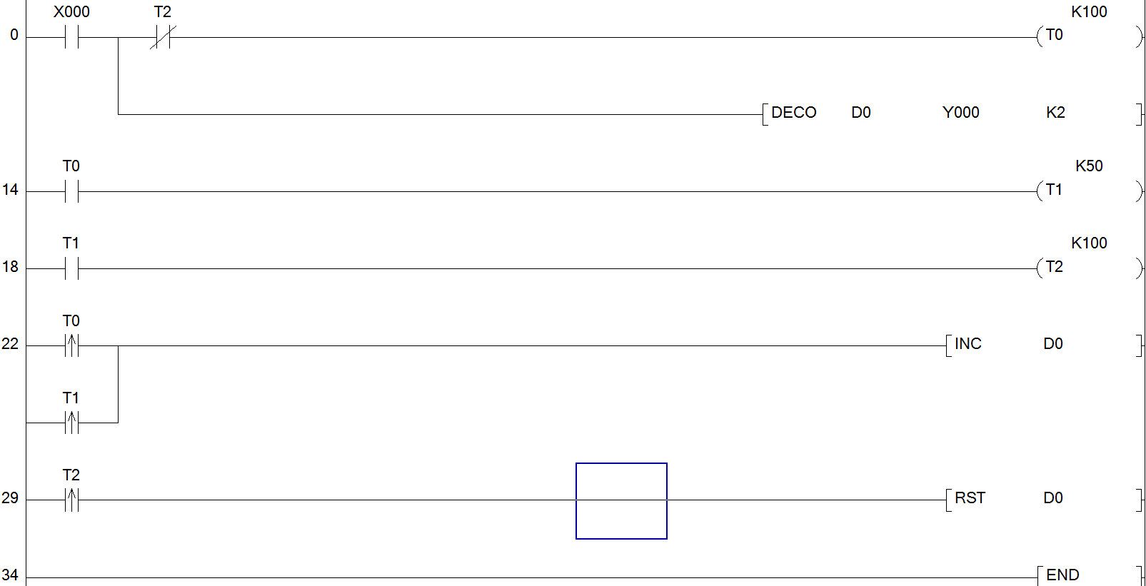 用譯碼指令實現(xiàn)上面動作,XO為動作啟動按鈕。