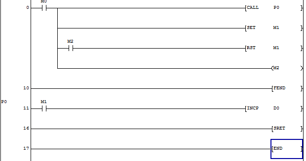 P0不執(zhí)行,子程序里面的M0不OFF,P0再接通,M0就通,沒有OFF過程。 |