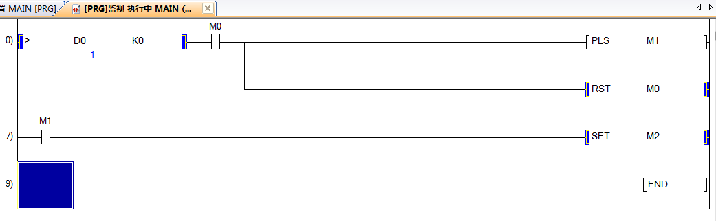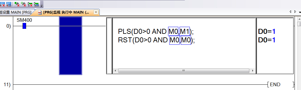 我用梯形圖是思維去理解就是:D0 >0 同時(shí) M0 =1 時(shí) 執(zhí)行PLS M1,然后掃描下一步的時(shí)候執(zhí)行復(fù)位 M0,讓IF關(guān)閉。同樣即使我不復(fù)位MO,PLS M1 應(yīng)該是一個(gè)上升沿輸出而已,不應(yīng)該常閉。賜教.