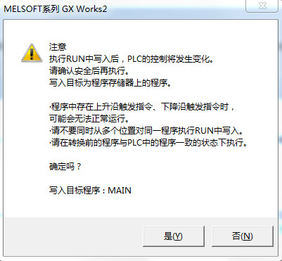 注意:執(zhí)行RUN中寫(xiě)入后,PLC的控制將發(fā)生變化…………。
