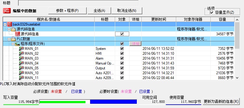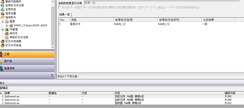 程序是用了標(biāo)簽功能。程序沒(méi)有將最后一次完整的編譯信息寫(xiě)入PLC。先讀出帶標(biāo)簽的編譯信息,再另新建一個(gè)不帶標(biāo)簽的讀出梯形圖,可兩個(gè)融合起來(lái)。
