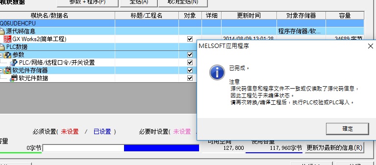 plc cpu型號(hào)為Q06UDEH,軟件為gx works2 1.536j.
