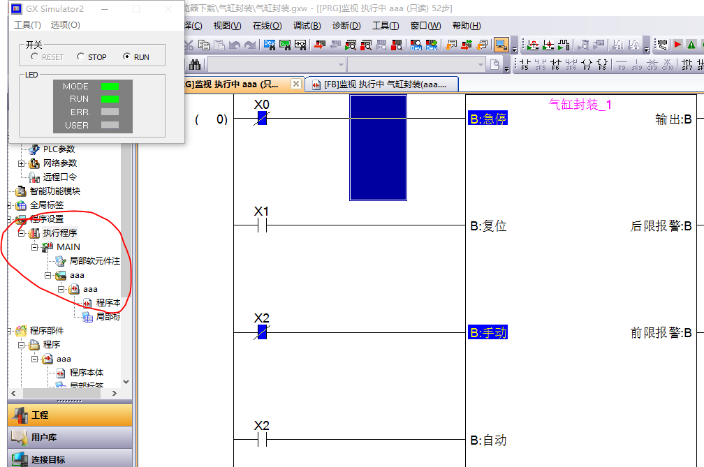 我照著星三角型啟動編了一個氣缸的程序,能通過編譯,但是程序上始終有個星號切不能離線仿真。請大俠幫我看看。