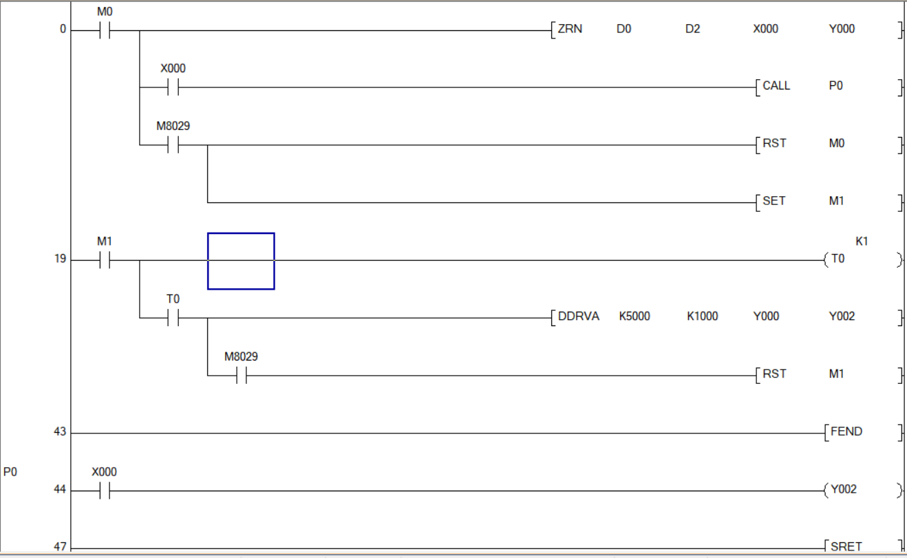 我想程序是從上到下執(zhí)行的,那我的子程序處的位置則是在ZRN下,DDRVA上,那ZRN執(zhí)行后,Y2為ON,執(zhí)行DDRVA,即使為-5000個(gè)脈沖,那它是還是會(huì)往負(fù)向走,不是往正向走,L因?yàn)閆RN時(shí)Y2=ON,到DDRVA時(shí),Y2=OFF,這有沒有問題呢?只是DDRVA是不受周期影響,那到執(zhí)行DDRVA時(shí),Y2是ON,還是OFF呢?感謝,趕明試下
