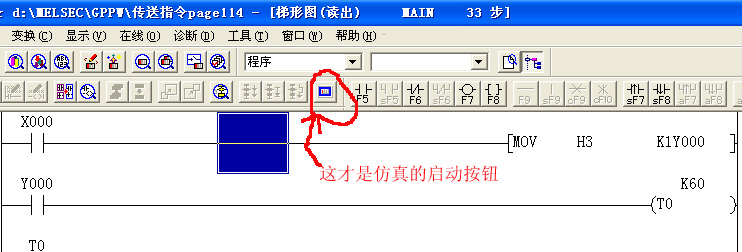 梯形圖編好后,點擊變換,再點擊"梯形圖邏輯測試啟動"就可以測試了.