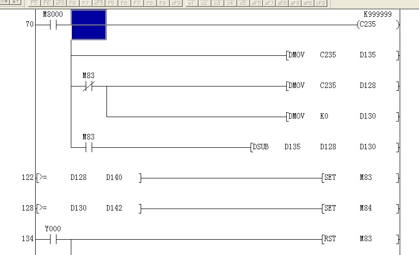 我有個三菱FX1S 的PLC  編程時遇到一些問題, 這個PLC與一個可預置可清零計數器連接通訊, 不知道怎么編程了,這個計數器分兩個計數  當第一個預置數到了 第二個才開始動作  請問各位大俠 如何編程  在給大家看看 這個梯形圖