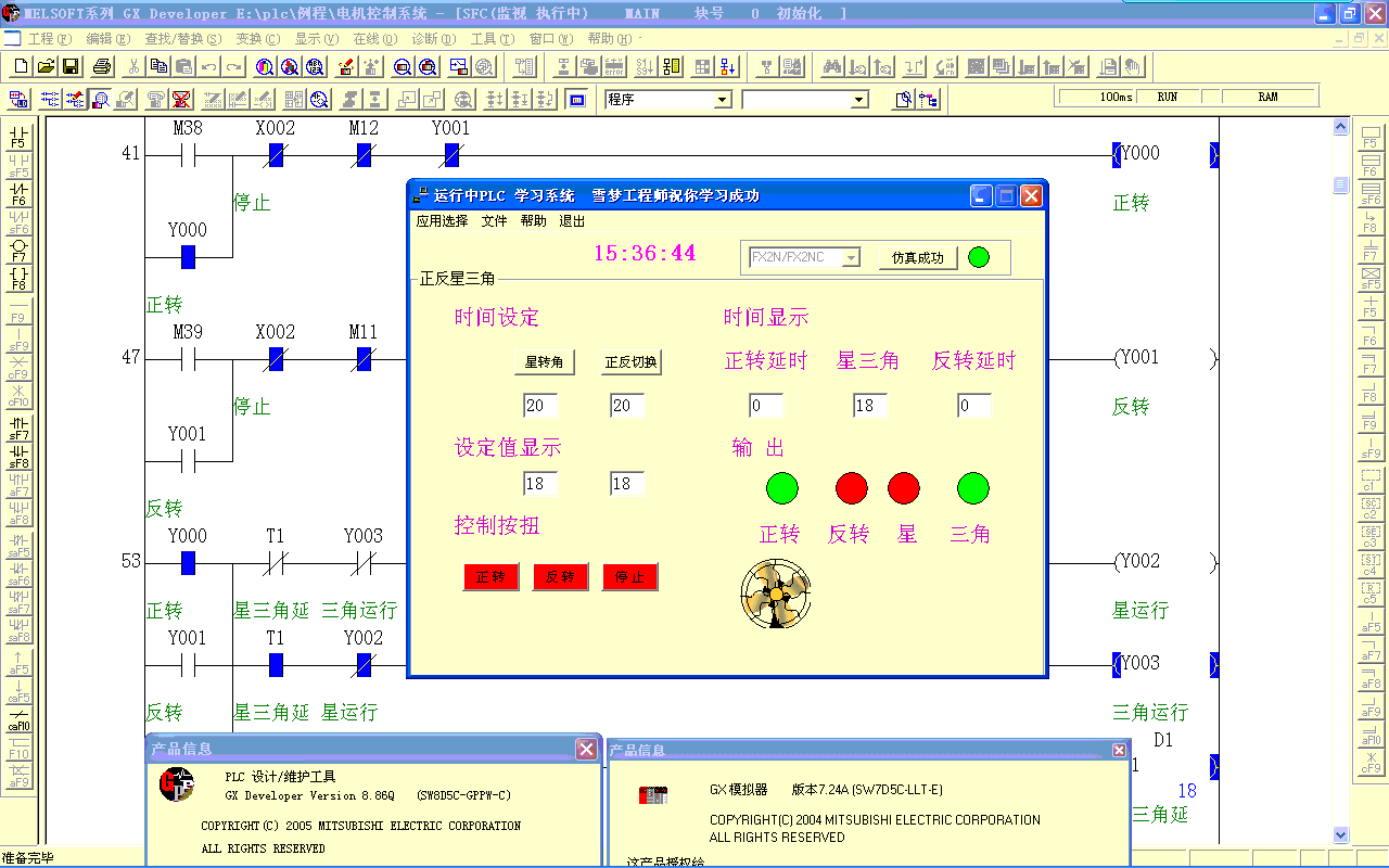 用三菱PLC軟件編程好梯形圖后,啟動梯形圖邏輯測試。再啟動本仿真模擬軟件即可進行仿真測試程序。方便學習PLC、程序檢查。