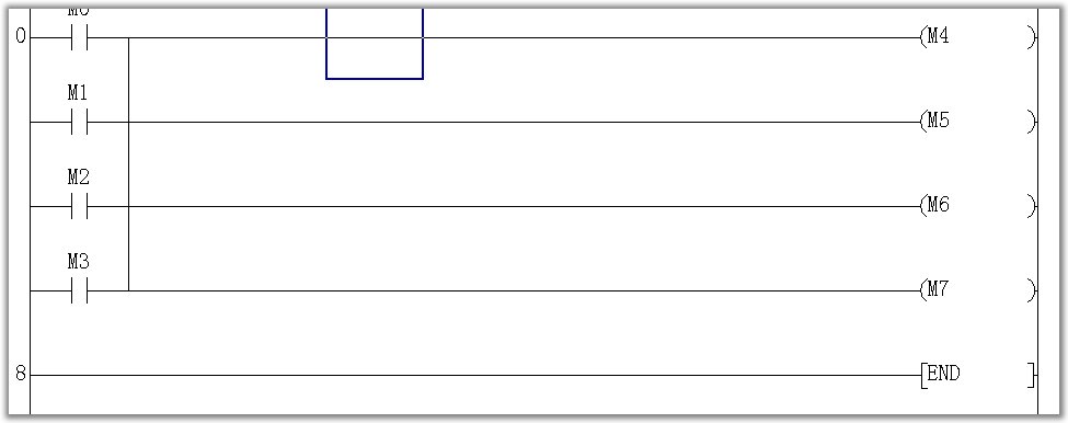 每個條件輸入都會動作.條件M0~M3滿足任意一個都有輸出。