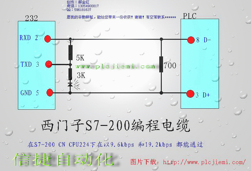 按照圖二(郝金紅)做的編程線,一直在用,沒問題。PLC是S7-200的上下載程序都好用,通信時,指示燈閃動,比較直觀。