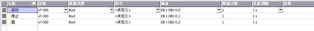 連接到s7300中的DB1_DBXO_0和DB1_DBXO_1。。然后是啟動按鈕連接了啟動變量,停止按鈕連接了停止變量