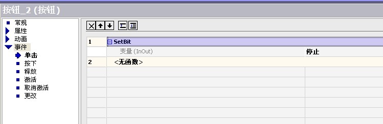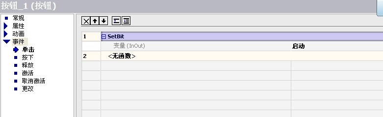 啟動按鈕連接了啟動變量,停止按鈕連接了停止變量,并且都是在  “事件”“單擊”類型“編輯位” 中選擇了SetBit。。