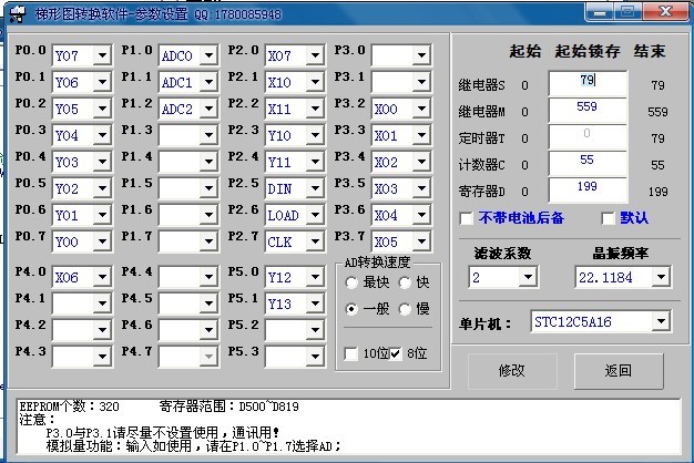 注:只有在設置P1.0~7設置ADC后,程序運行后對應的S68~S75ON才采集數據到對應的Dn(0~7);
